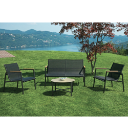 Salotto da giardino 4 posti in acciaio e rattan sintetico con cuscini