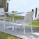 La struttura in alluminio bianco assicura solidità e leggerezza, rendendo le sedie resistenti agli agenti atmosferici e facili da spostare.