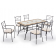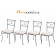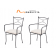 Il set include 4 sedie impilabili e 2 poltroncine con braccioli da posizionare a capo tavola. Il disegno sullo schienale richiama le geometrie del ferro battuto. Sia le sedie sia le poltroncine sono complete di cuscini imbottiti e con fodera in poliestere color bianco, che ne aumentano il confort di utilizzo.