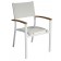 Le 6 sedie hanno struttura in alluminio e braccioli rifiniti in legno teak. La seduta è in textilene imbottito e lavabile facilmente.