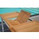 Il tavolo è allungabile ed è realizzato in alluminio, il piano è in vero legno di teak con lavorazione a doghe e bordo perimetrale.